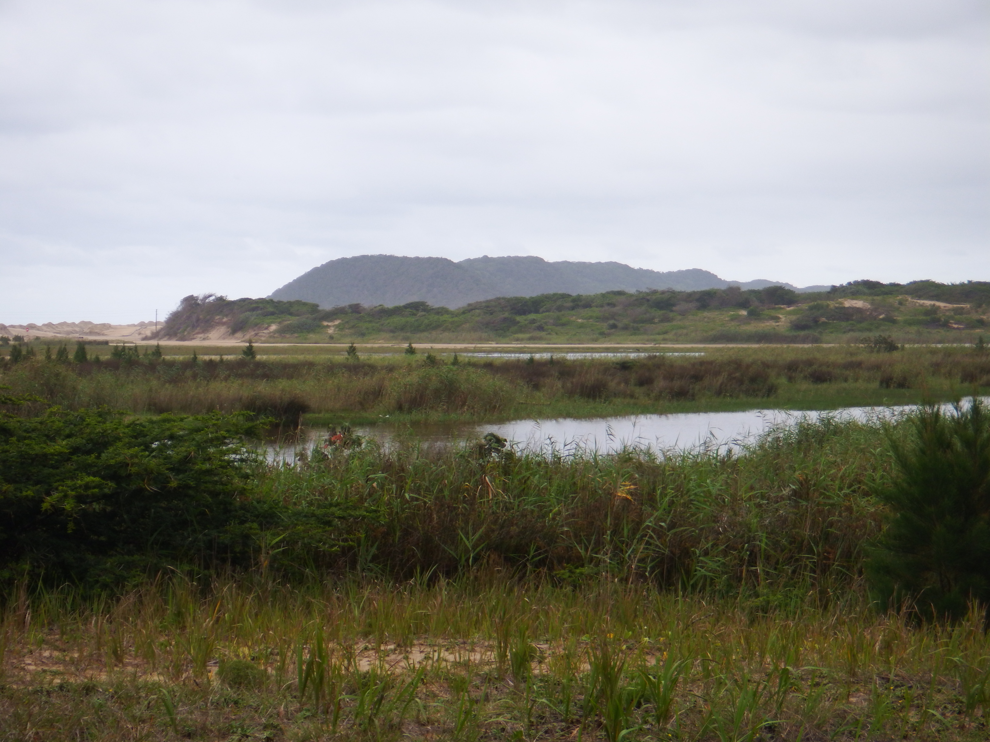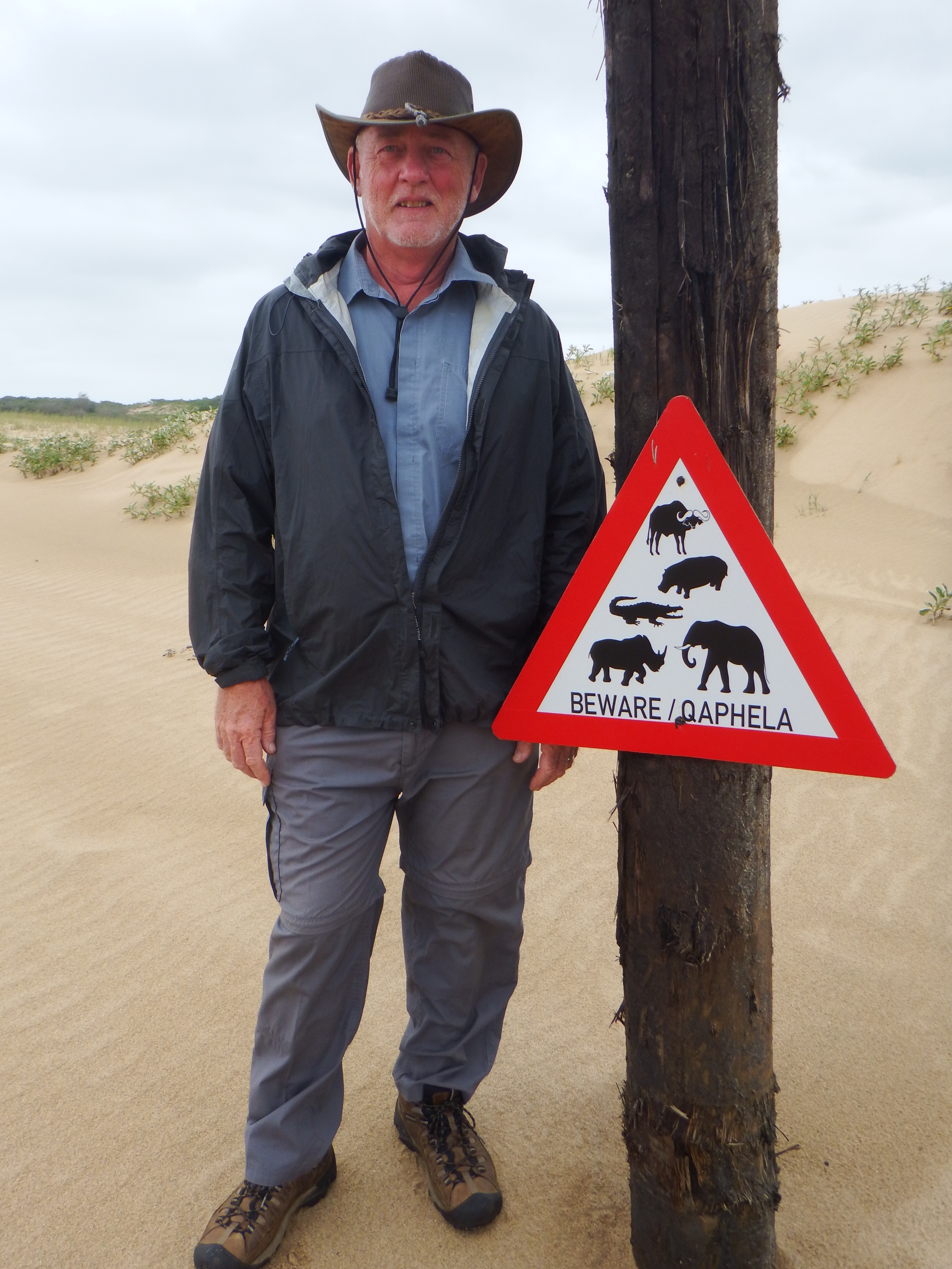After a short trip to the mall to sort out a few bits we were on the road north. Our first night was to be spent in St Lucia, a pleasant village and a useful base for exploring the southern are of the park. We were too early to check into our accommodation so decided to have lunch at the ski boat club restaurant that had been recommend to us. The restaurant garden overlooked the southern end of the St Lucia estuary and croc island in the middle. After a delicious lunch it was recommended we take a stroll along the boardwalk that leads through the sand dunes to the beach. The Indian ocean looked very wild that day.