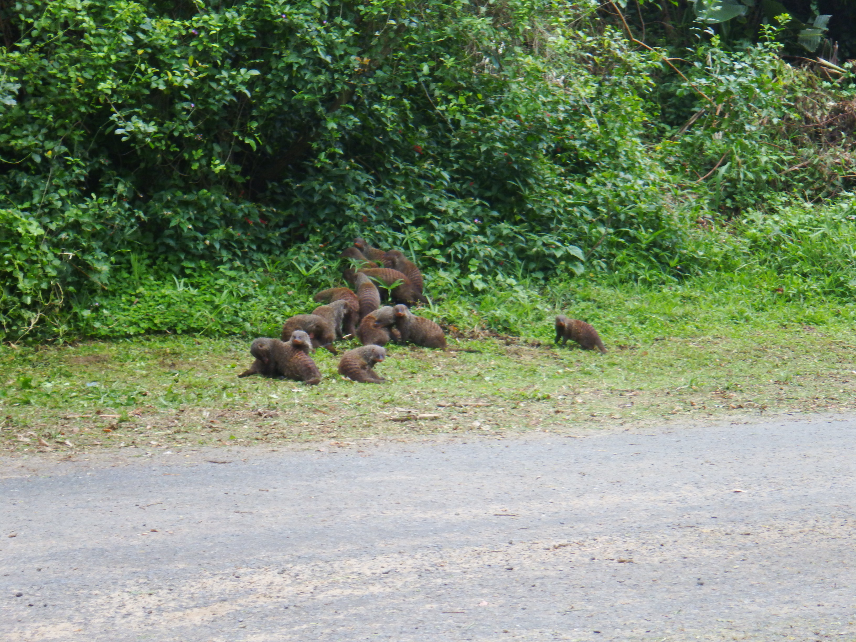 As we made our way back to the car park this little group of striped mongoose were sitting on the side of the road.