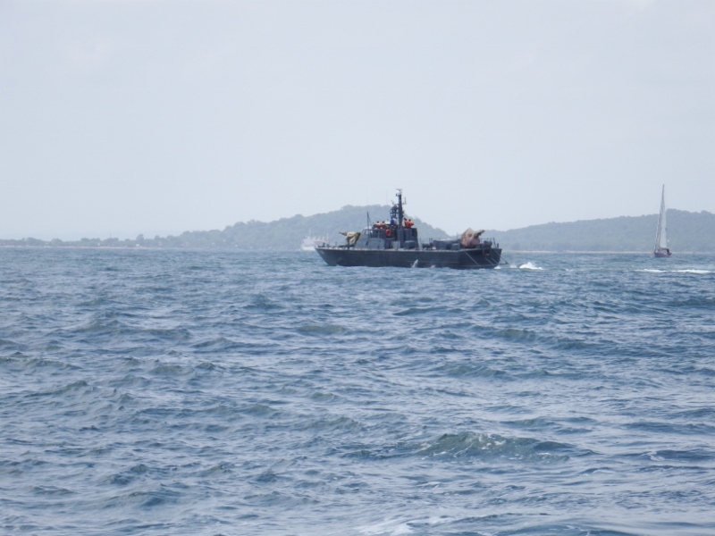 The excitement this morning was being intercepted by a Sri Lankan navy vessel. They came so close we were worried they were going to hit us and signaled to them to move away. There were boys on the bow with life jackets on and I think they thought they were going to board us but there was no way they could come along side us. They were twice as big as us and with the swell they with have seriously damaged us. Bill tried calling on the radio but they didn’t answer. They wrote down our boats name then pulled away. Tintin are about a mile away from us so they headed in their direction and did the same to them then left. The navy are still very suspicious of vessels off shore after the war that only ended in 2006.