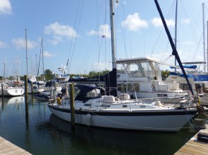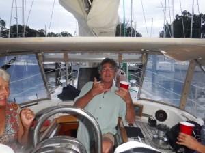 The next day we were off again and sailed with just the genny again. Mark enjoyed taking a turn on the helm. By lunchtime the wind had gone and it started to rain. The decision was made to go into a marina. Oddly enough it was also called Harbourtown marina. It was in the Canaveral Barge canal at