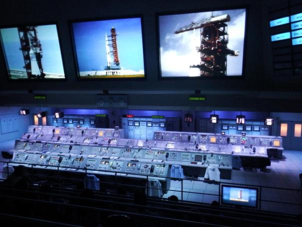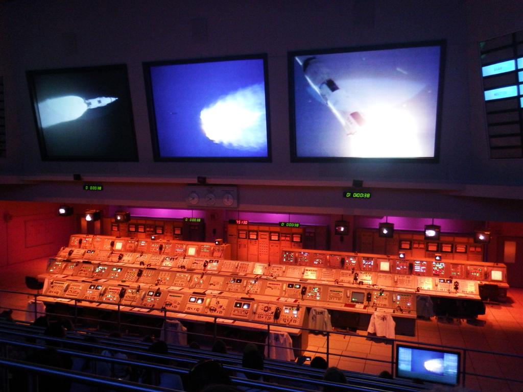 The bus stops on the Cape Canaveral island at further exhibition halls. This was a simulator for a rocket launch and these screens were showing an actual launch. I have a video of the whole thing. The floor was shaking and it was very loud, it was really exciting. It would be fantastic to witness an actual launch.