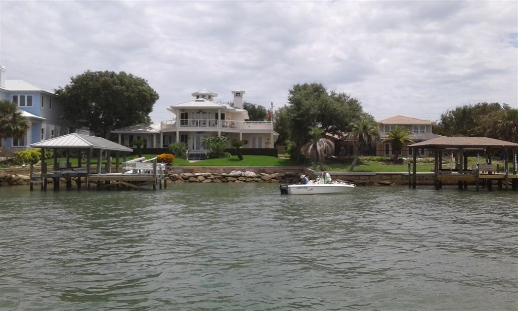 Finally on Tuesday 6th we got going. Unfortunately there was a thunderstorm brewing and I didn’t want to go on the outside. We were already late and didn’t want to wait another day so travelled up the ICW instead. Once we passed through the opening Fort Pierce north bridge we were committed and couldn’t go back. As the wind was coming from the south Bill pulled the headsail out and we sailed slowly up the waterway. Most of the Florida section is lined with these huge homesteads that are obscene in their size. At first we thought they were hotels or apartments but then we realised they were 1 house.