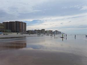 Daytona beach bills itself as ‘The World’s Most Famous Beach’. It’s the birthplace of NASCAR, which started in 1947. Its origins go back as far as 1902 to drag races held on the beach’s hard packed sand. We were a bit further south than the actual Daytona beach but it all looks the same. It was a beautiful beach. Kate and Mark went off to explore. When Bill and I got down to the beach it reminded us a bit of the Gold coast in Australia.