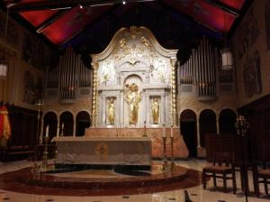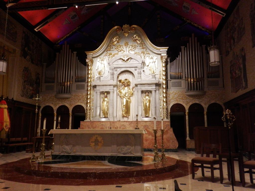 The altar was sitting on a marble floor and had a centrepiece behind the altar covered in gold and surrounded by the organ pipes. Really stunning. It was also cool in there.