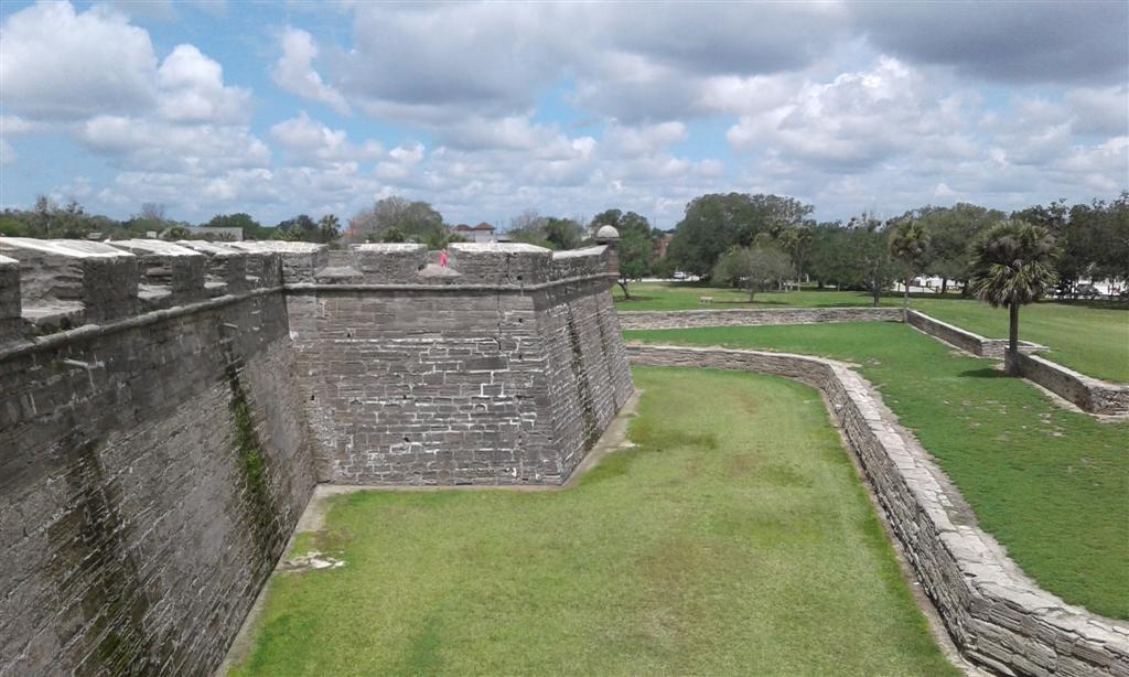 On the edge of town is the Castello de San Marcos, the country’s oldest masonry fort completed by the Spanish in 1695. For many years it was the northernmost outpost of Spain’s vast New World empire. It protected St Augustine from pirate raids and Spain’s major rival at the time, Great Britain. The fortress is a hollow square with diamond shaped bastions at each corner with only one way in or out.