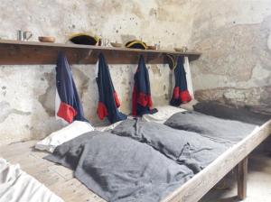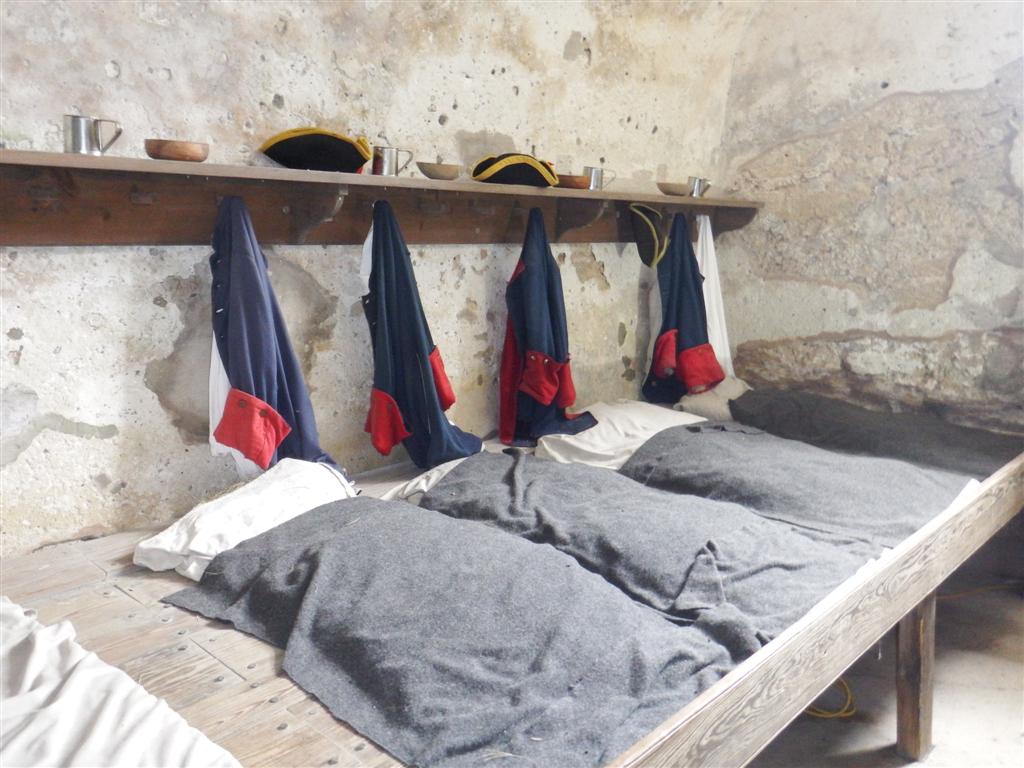 St Augustine was a garrison town and no one lived inside the Castillo. The soldiers lived in town with their families and came to the fort to stand a rotating guard duty. They slept on these platforms and prepared their meals in this room.