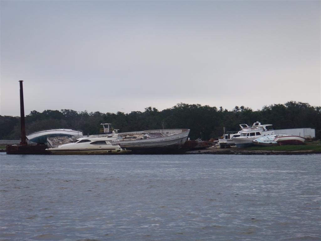 We also passed a boat yard with a number of dead boats on the side, which were probably remnants of hurricane Matthew that went through here last year. We had seen lots of broken boats in the shallows on our way up the ICW. The anchor was dropped at