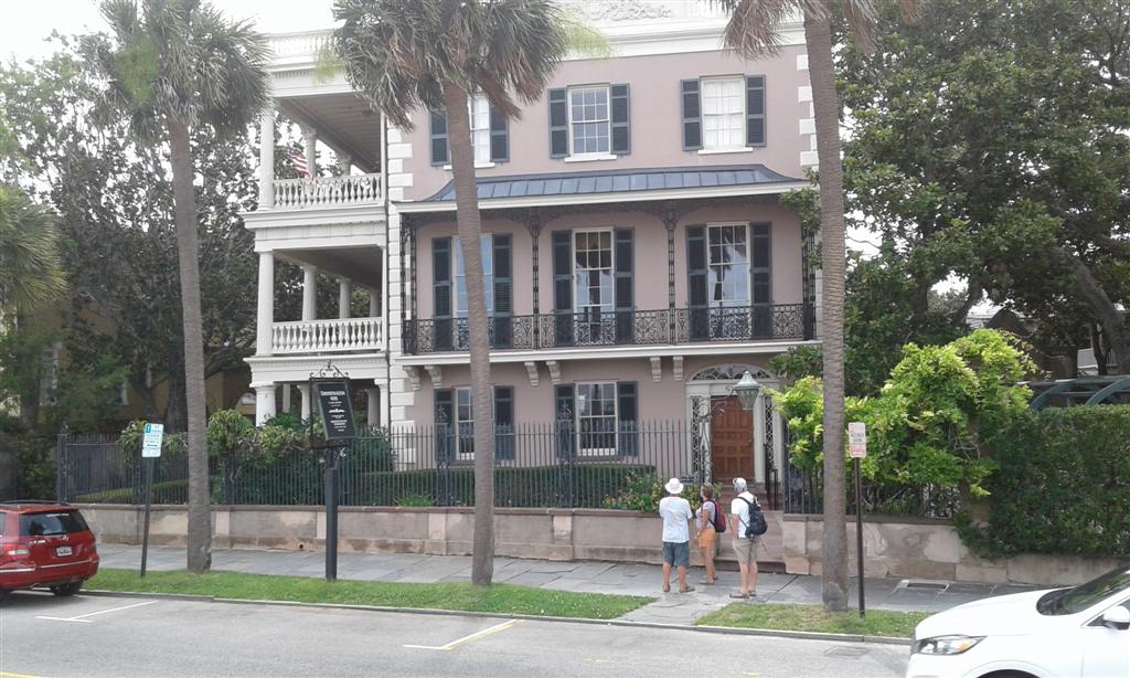 Monday 19th we went ashore with Bob and Lyn and had a nice lunch together. Charleston or Charles Towne, named for Charles II, was settled by English colonists on the Ashley river in 1670. By 1740 it had become one of the busiest ports on the eastern seaboard, the centre of prosperous rice-growing and a trading colony built on the back of slavery. Charleston was a key trading centre for the slave industry and bustling slave auction houses clustered along the river. In 1861 the first shots of the Civil war rang out at Fort Sumter that we had passed in the harbour entrance. After the war the labour intensive rice plantations became uneconomical without slave labour and the importance of the city went into decline. The southern most tip of the peninsular has the bulk of the antebellum mansions and about a half a dozen of these majestic homes are open to the public. In the afternoon we looked around the town and visited the Edmonston-Alston house, which was beautifully restored but no photos allowed.
