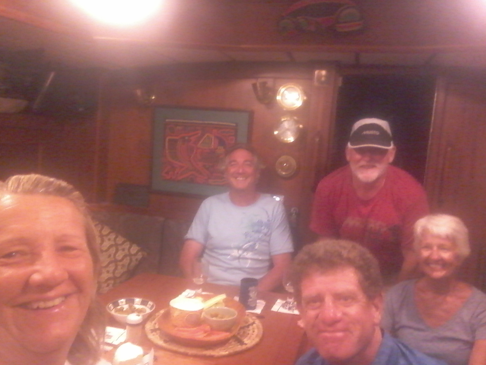 After the boat show we made our way to Solstice in the marina for the reunion we had been looking forward to. Bill on Solstice had invited our lovely friends Jake and Jackie of Hokule’a, now based in California, to stay with him, also Jack and Zdenka of Kite drove down from Portland where we met in the summer. Neil and Ruth had Rutea across the way and were invited and Behan of Totem joined us later in the evening. It was wonderful to all be together again and catch up on everyone’s news.