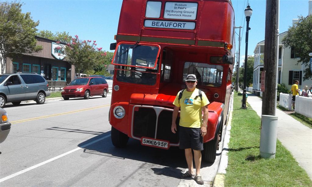 Wednesday 28th we went ashore and enjoyed walking around the town. I was very excited to see this London bus which is exactly the sort of bus my Dad used to drive many years ago. In the US it isn’t mandatory to have a front number plate so this bus was still displaying it’s original English number plate at the front. Also on the side it still had it’s bus number and destinations in London on display. The tourist company were using it for tours around the area.