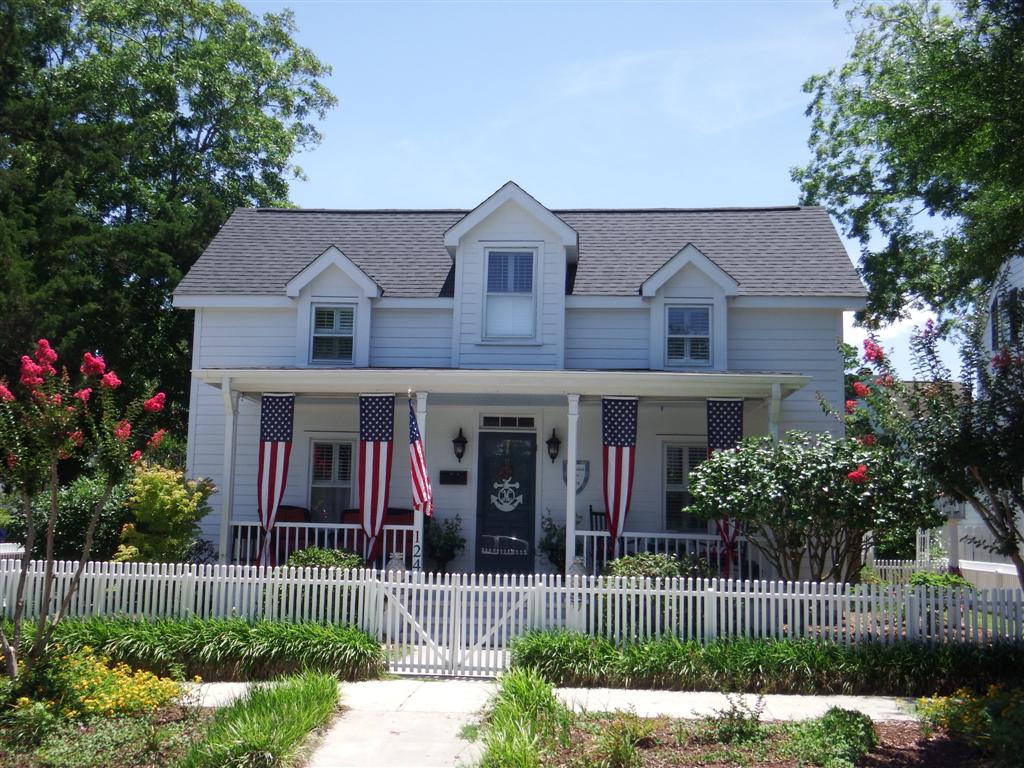 The whole town was very attractive and many houses already had their 4th July decorations on display. This was the beautiful village church. One thing that struck us as we walked around Beaufort that, along with many of the coastal towns we’d visited, we didn’t see a single black face. In Beaufort the only one we saw was a guy cutting someone’s lawn. We had seen various groups of kids on summer school on our journey along the coast but not one non-white face. I’m not sure what that means but we found it slightly disturbing.