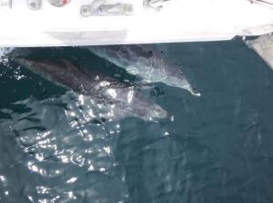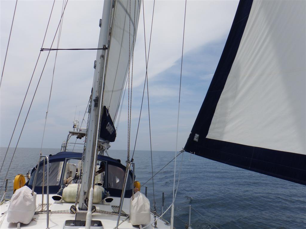 Friday 30th the winds were forecast to blow from the south. We motored back out through the Beaufort Inlet and had to motor 20 miles south around the cape lookout shoals before we were able to turn north and sailed the rest of the day with a dolphin escort. During the afternoon it was in a north east direction towards Cape Hatteras before turning north towards the Chesapeake bay. Rutea and Bill on the other Solstice were also making the journey that day although they were about half a day behind us. At 10pm we finally crossed the 35° line. Cape Hatteras has a dreadful reputation in these parts and we weren’t disappointed. As we rounded the cape at 1am we were hit by a huge squall that completely overpowered the boat for about 10 minutes until Bill was able to regain control but that was in July…..