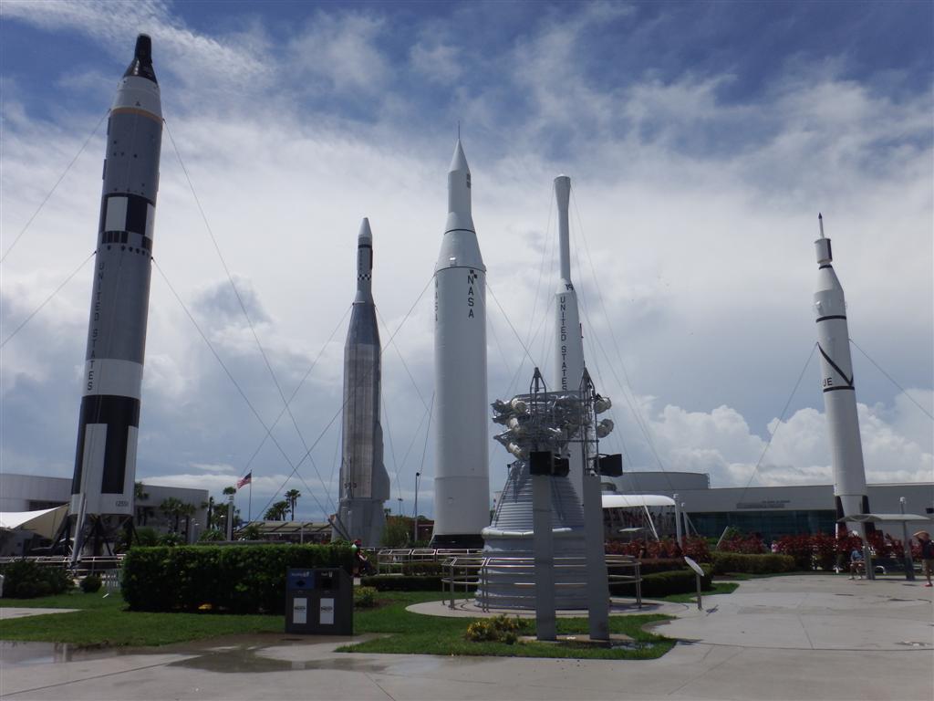 The day started off sunny and we explored the Rocket garden but the clouds built up and brought the rain later in the day. Your ticket includes a guided bus tour of the launch sites and we were able to get quite close to them although you have to stay on the bus.