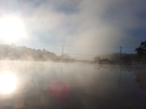 The entrance was shallow but once inside it was good. We arrived just in time because the fog was coming down and was still there in the morning.