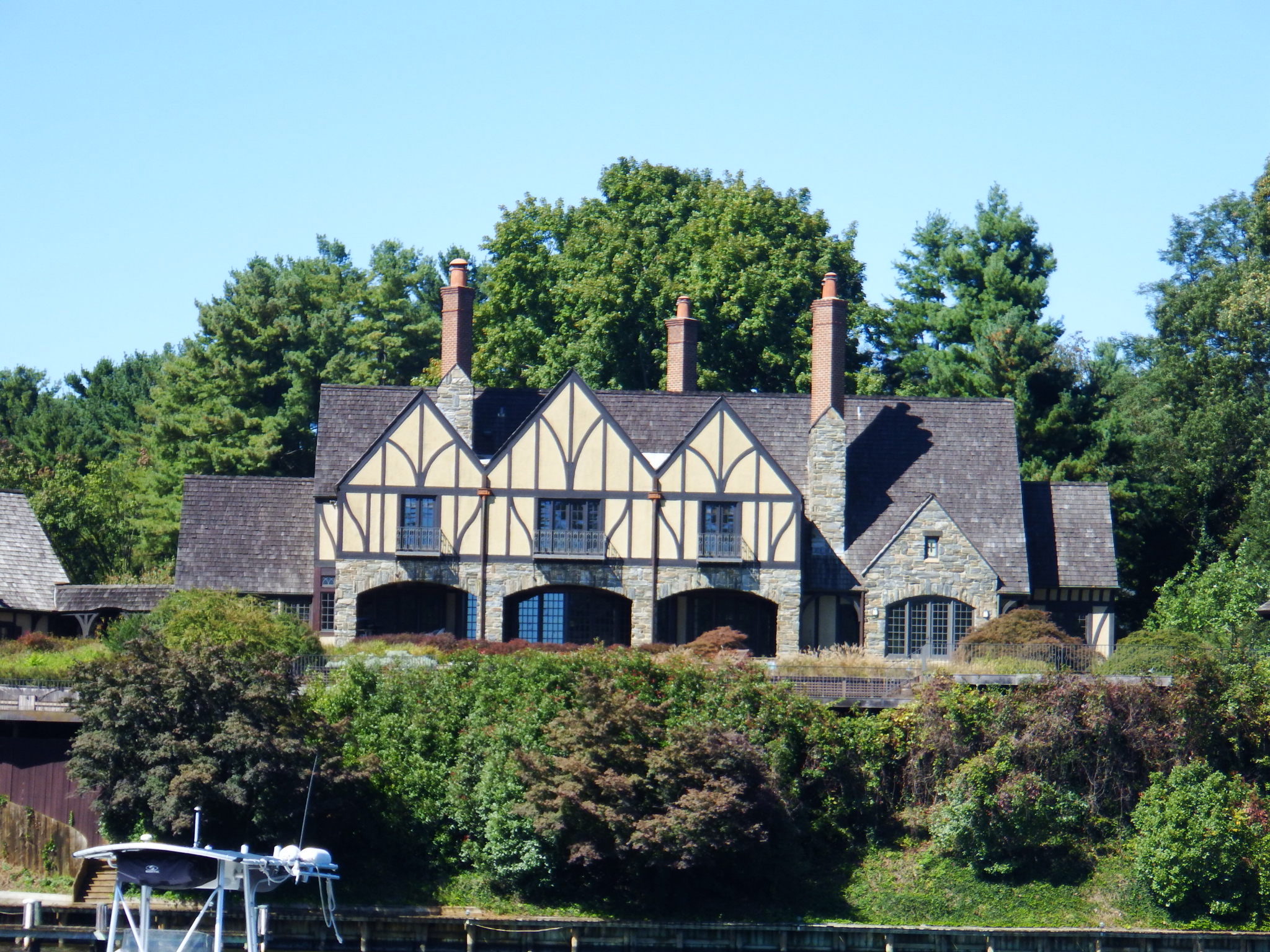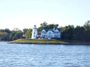 There were the usual ‘cottages’ around the water’s edge. One of them was set on an island and built around a lighthouse. I can’t imagine it ever being used for navigation that far inside the bay but it looked pretty.