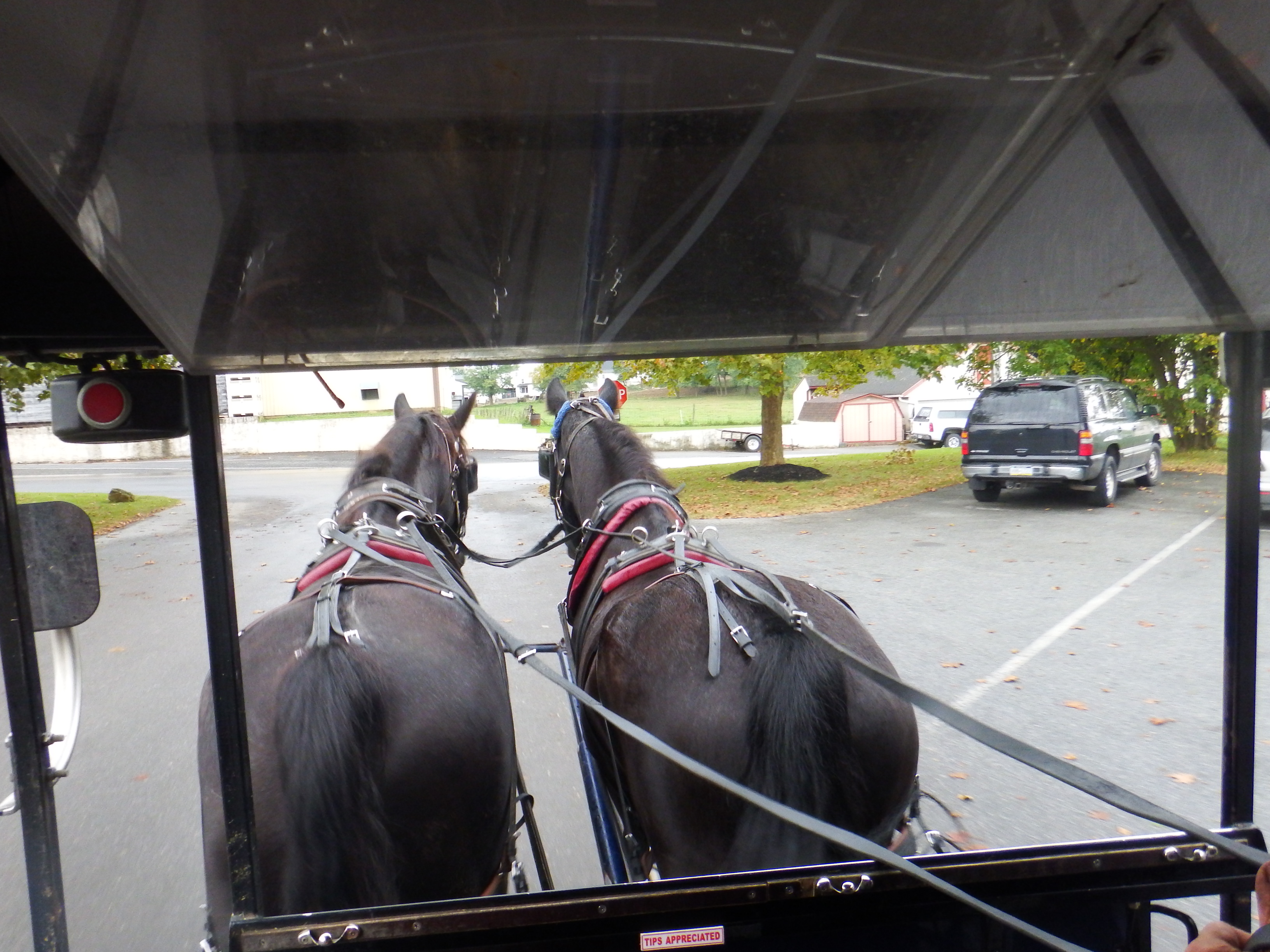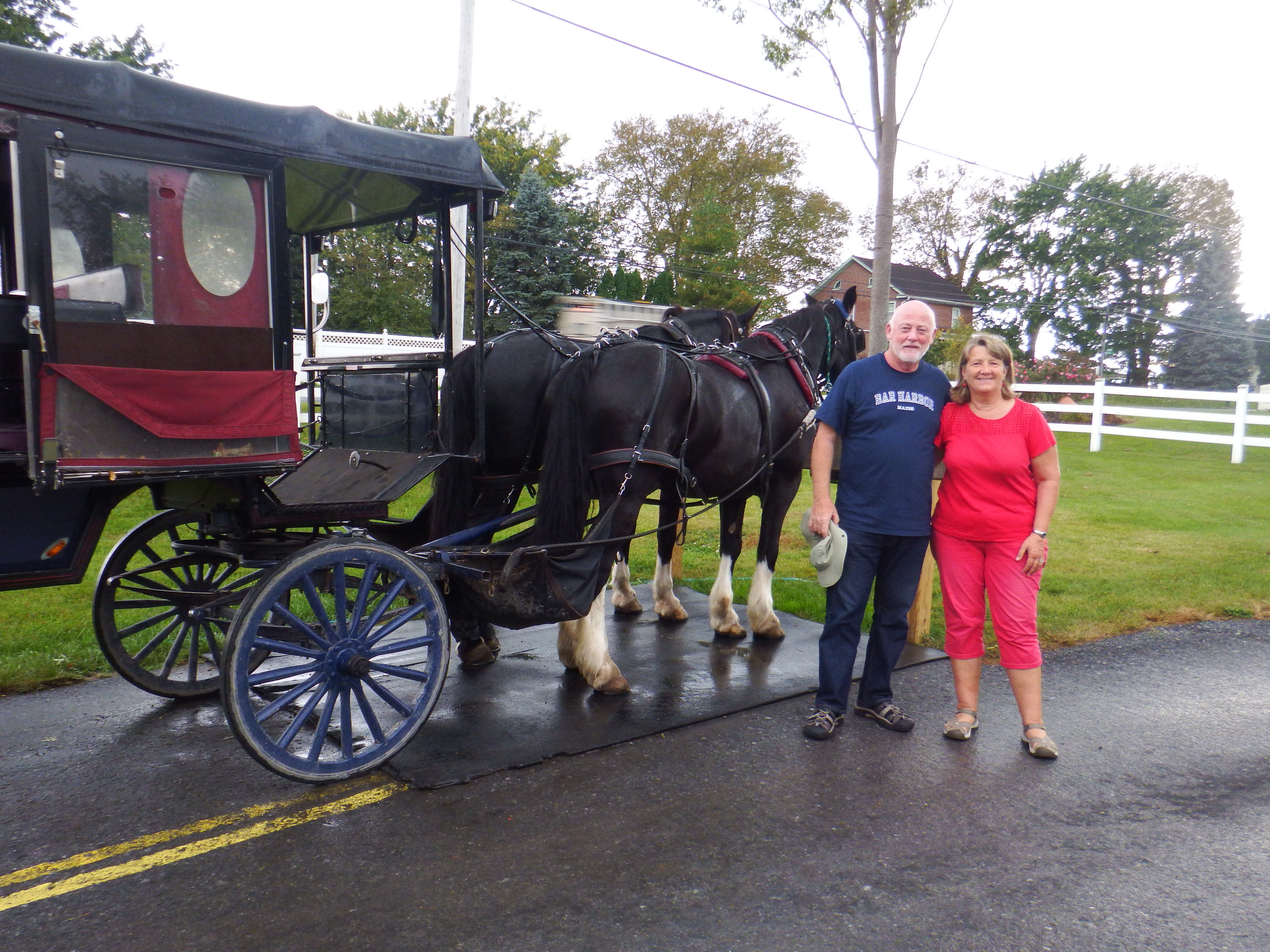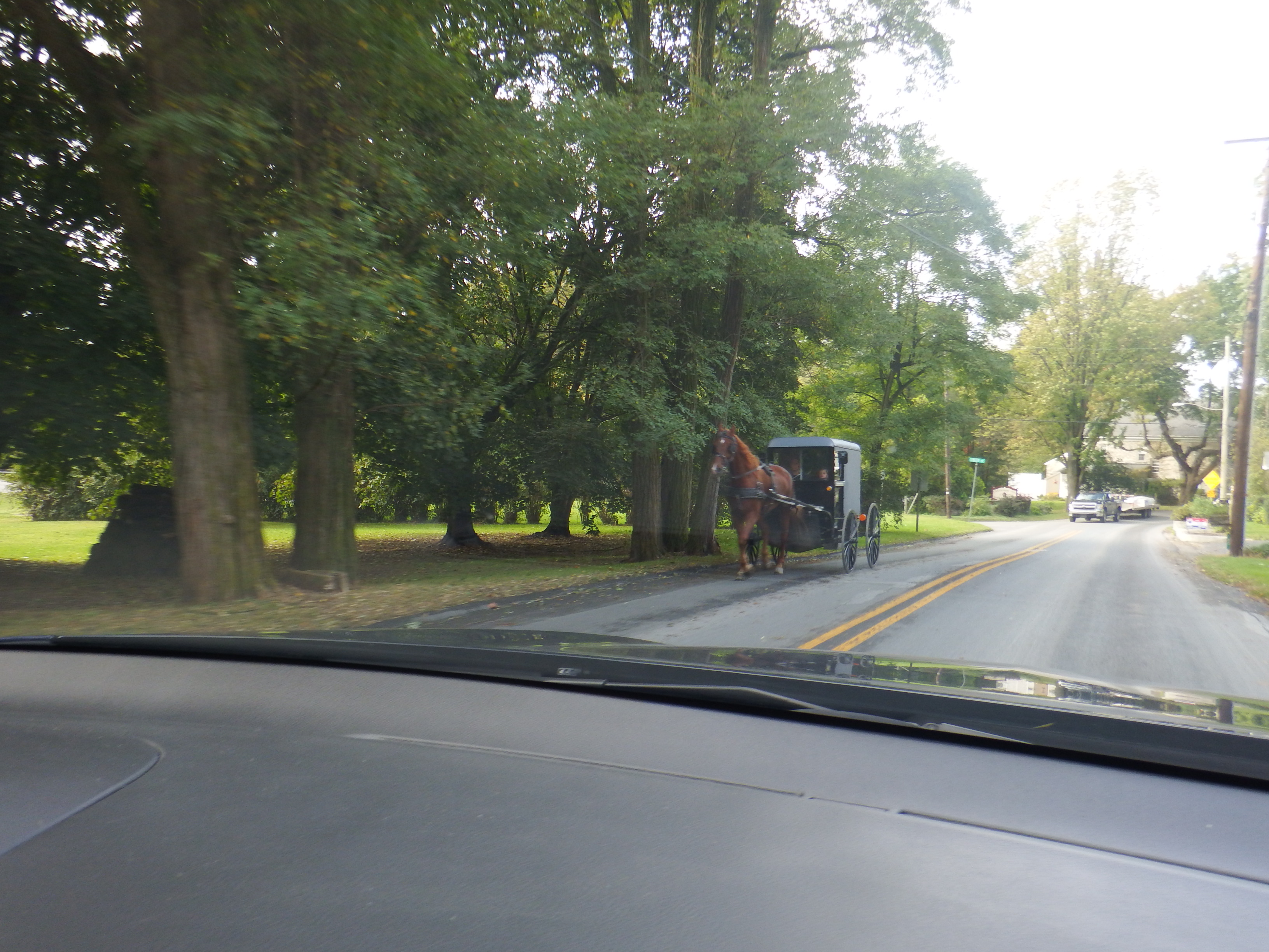 Monday 9th October we were all packed and ready to leave but it was raining. Gemma’s garden was a fairly steep bank to climb up some uneven steps so we waited until it eased off a bit. At 11.00 we called an uber and went to the car hire place. After the initial checks we were on our way driving north out of Maryland into Pennsylvania. We headed into the so-called Pennsylvania Dutch community. These religious orders and cultures have been established here since the 18th century. Amish are the best known for their devotion to various degrees of low-tech, plain living but it was really slightly surreal seeing them in the flesh riding up and down the country roads in their very characteristic horse drawn buggies.