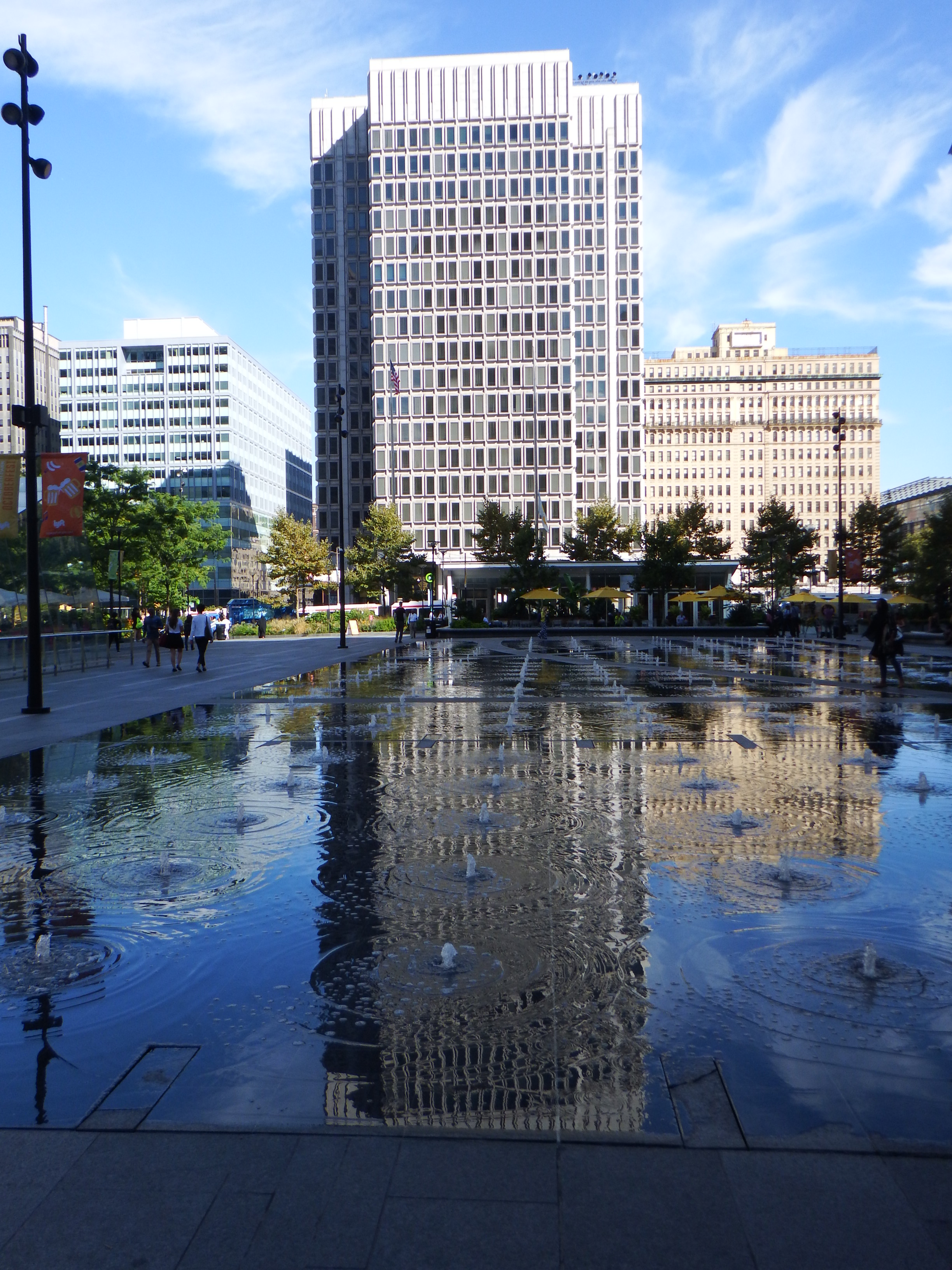 The fountain in the square outside is allowed to freeze in the winter for ice skating but that day it was giving some wonderful reflections of the surrounding buildings.