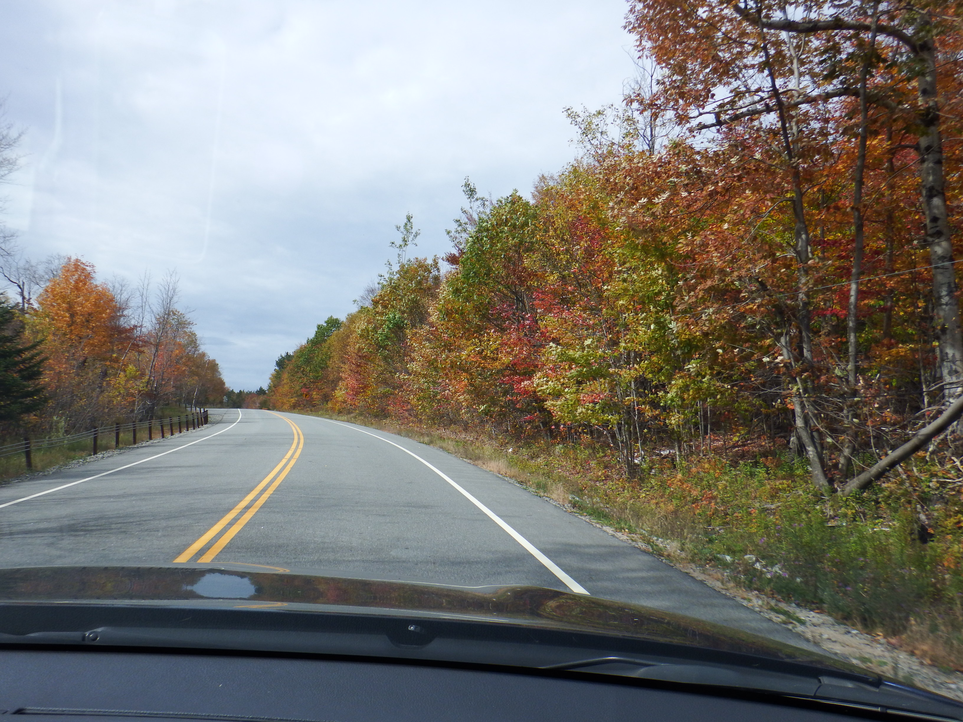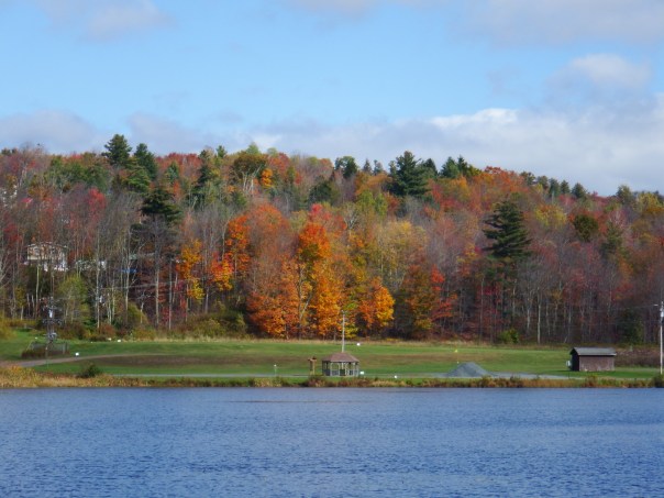 After lunch we drove further north and up towards the Whiteface mountain toll road where the Olympic ski races were held. Whiteface is the only peak in the Adirondacks accessible by car. Unfortunately it had clouded over and the colours of the leaves weren’t great. Furthermore when we got to the toll gate we found it was closed until May!