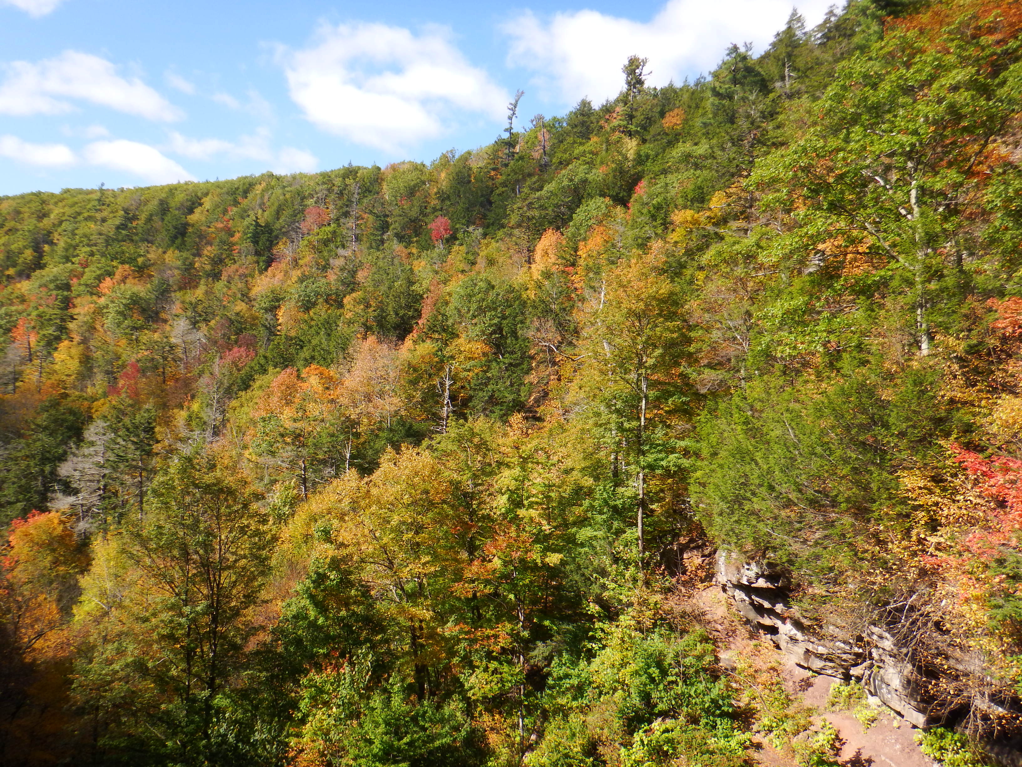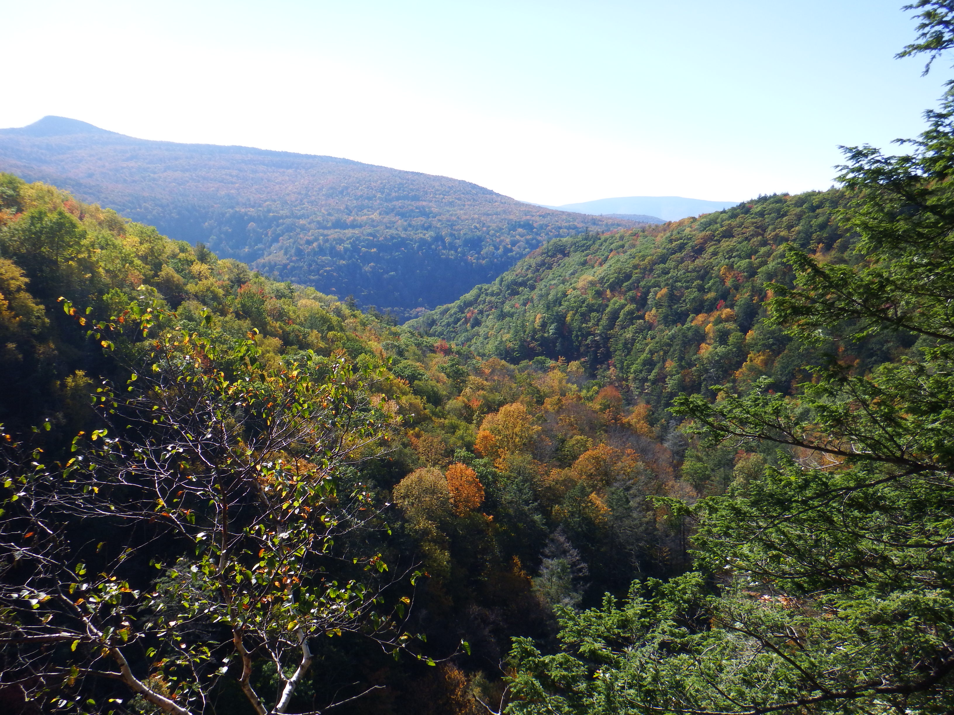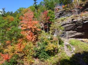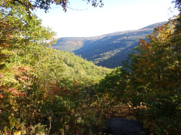 After coffee we continued for a few miles east to the Kaaterskill falls. There are so many wonderful hikes in this area and the Kaaterskill falls was recommended to us. With a change of shoes we were ready to go. There were a lot of leaves on the ground already from the recent rain but still a lot on the trees.