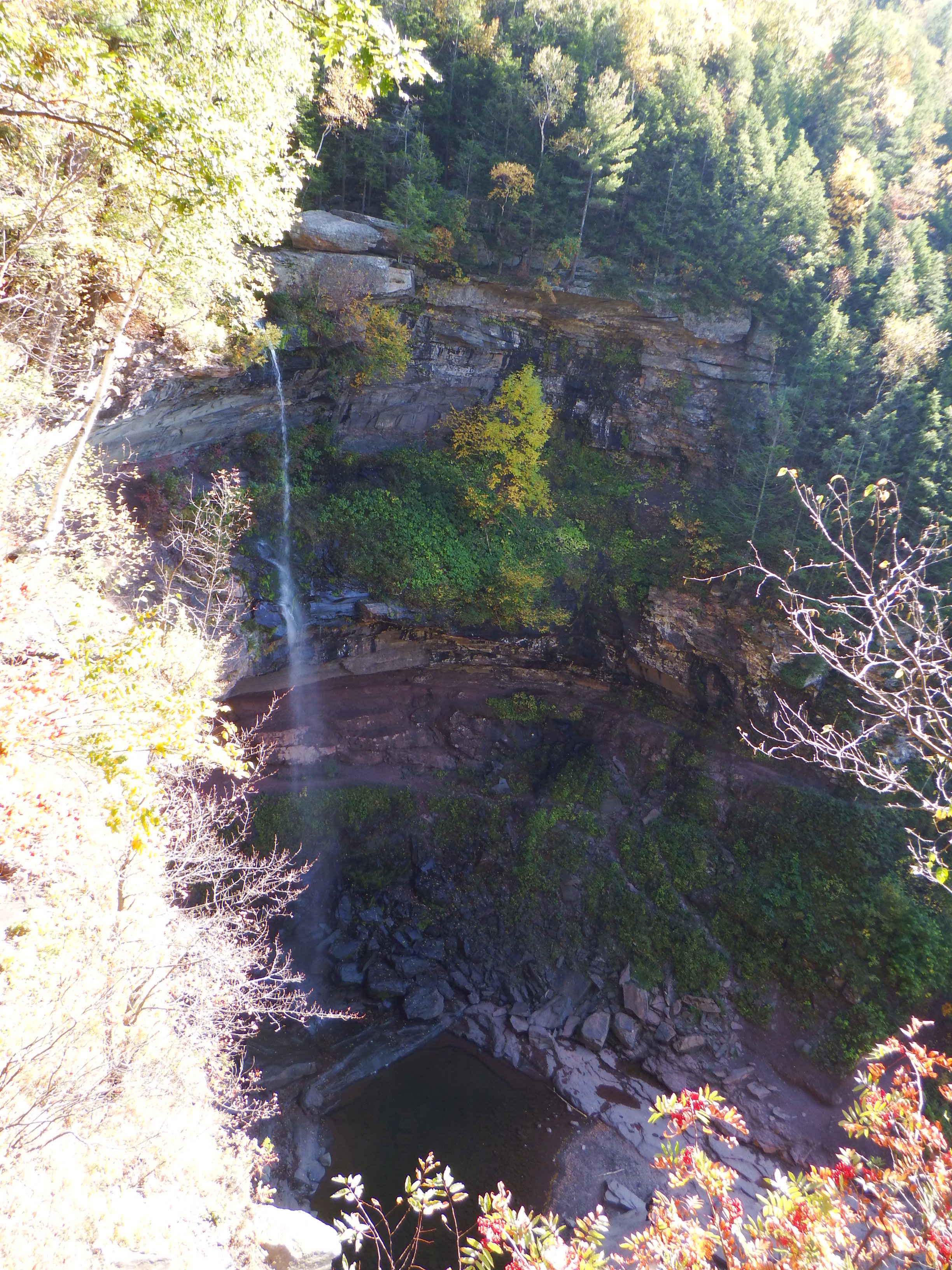 The Kaaterskill falls are at the end of an enormouse gorge. It was very autumnal to start with but we soon warmed up when we started walking. The views were stunning. The walk was downhill into the gorge until we came out into a clearing at the middle level. The falls were in the shade but you can still see the strata in the rocks. The falls were greatly reduced at that time of the year but it would be spectacular with the snow melt.