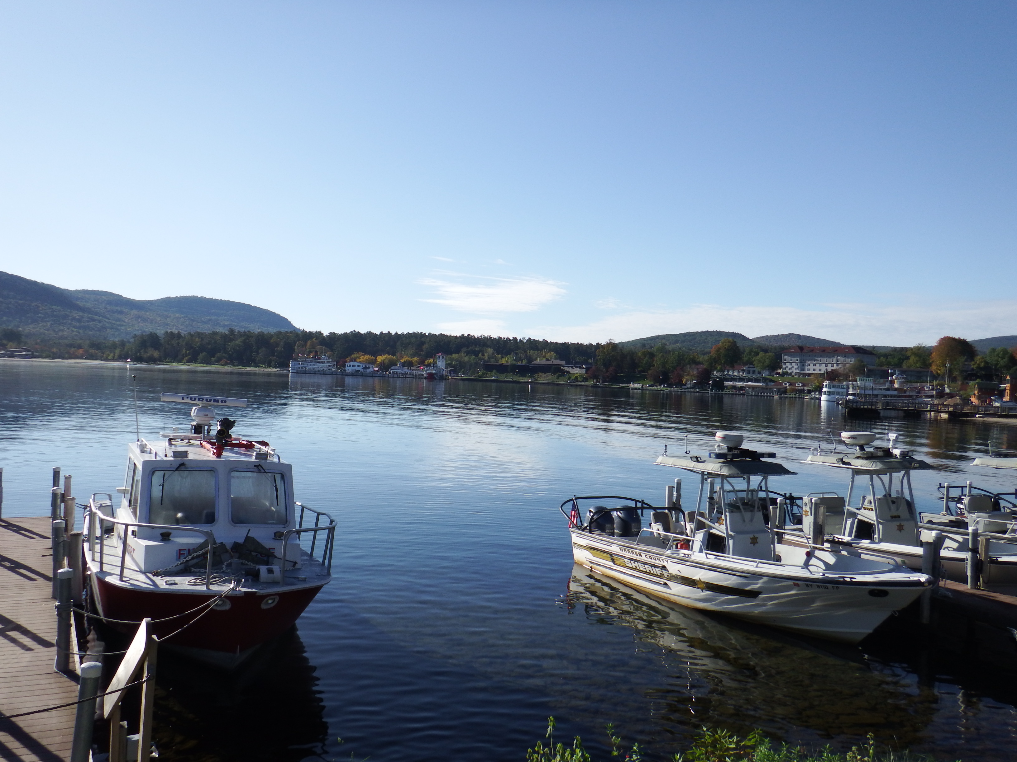 The Adirondack mountains cover 9375 sq miles from the centre of New York state to the Canadian border. With many peaks over 4000ft high. Like the Catskills to the south, much of the Adirondacks’ dense forest is protected by the state constitution. It’s also a great place to see the colour show of the Autumn leaves. Lake George is the gateway to the Adirondacks. A 32 mile lake with paddle-wheel boats rides on the crystalline water’s. Friday 13th we stopped there for breakfast before our hunt for more Autumn leaves continued.