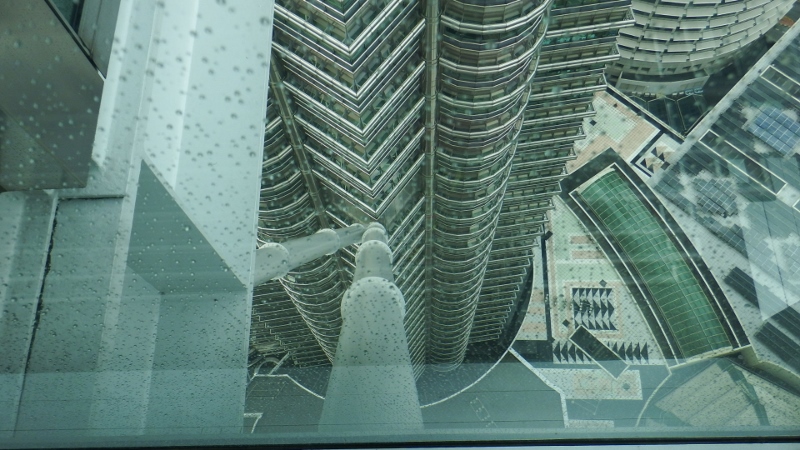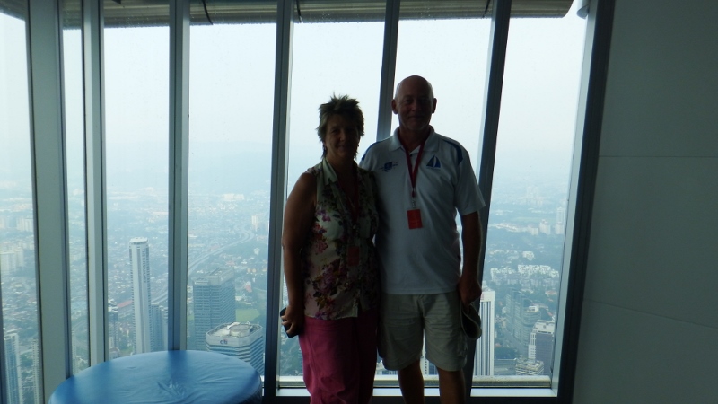 At our allotted time we joined the tour. The Petronas Twin towers were once the tallest building in the world at a height of 452 metres. It’s largely constructed of reinforced concrete with a steel and glass facade designed to resemble motifs found in Islamic architecture. The Skybridge is at the 41st and 42nd levels and that’s where we started our tour. The bridge is the highest 2 storey bridge in the world and is attached to the towers with a sliding system that allows the towers and the bridge to move independently up to about 10 inches each side. It’s built to with stand winds of 180kph, fortunately the strongest they’ve ever had was 80 kph but the expansion gap had moved by 4 inches during the last Japanese earthquake.