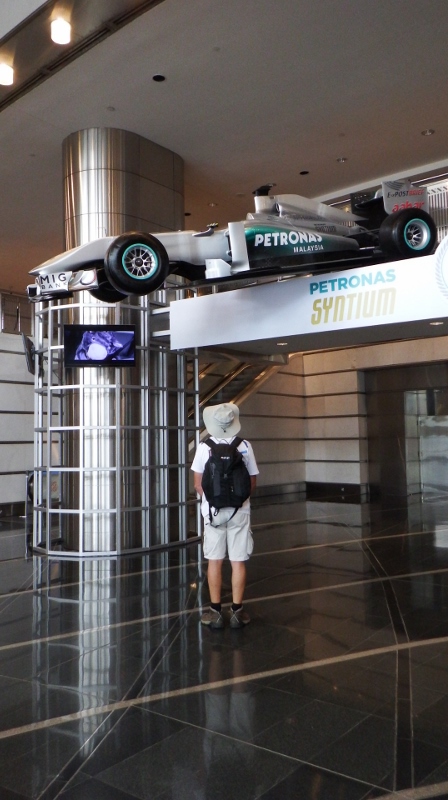 In the entrance they have 2 formula 1 racing cars sponsored by Petronas that have been used. Bill was interested to see the body structure which his company used to make patterns for on similar vehicles. You could see the under body protection plate that had scratches on it from where the body had grounded out.