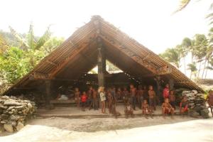 When it finally got dry long enough to go ashore we met Chief John who welcomed us to his village. We mounted an expedition to the other side of the island together with the Turkish contingent to inspect a “custom house”, where the bones of past chiefs were interred, and to a lake in the centre of the island which was responsible for their reliable water table supply.