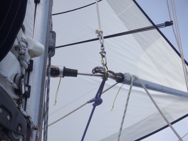 Bill wanted to get the new reefing lines in before we headed south so Saturday 6th he spent quite a bit of the day rerunning them in and out of the boom while I sat writing. Once he’d finished we raised the sail to check all was ok and thankfully, with a few minor adjustments, everything was fine.