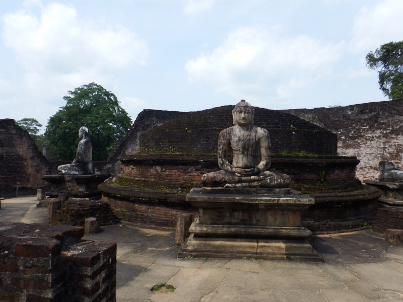 Just across from the Vatadage was the Hatadage monument said to have been built in 60 hours. It was originally a two-storey building. The symmetry of pillars receding into the distance is always an impressive sight even if I did have to wait for ages for all the tourists to move out of the way. We spent about an hour wandering between all the buildings in the quadrangle area. It would get a bit boring if I listed them all. You’ll have to come here to see for yourself.