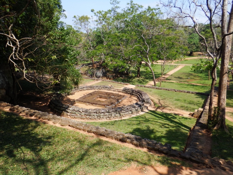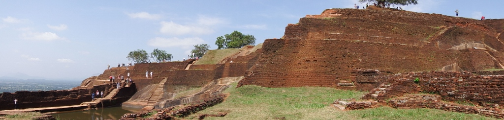 The terraced summit of the rock covers 1.6 hectares and is thought to be the site chosen by King Kassapa for is fortified capital. Today only the low foundations of structures exist and one can only imagine how grand the original structures would have been. The astonishing views across a sea of green forest is captivating.