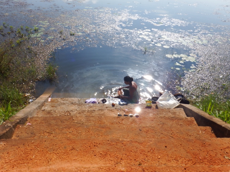 This lady was washing herself and her clothes by the water’s edge.