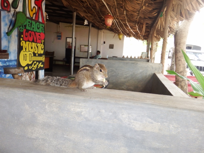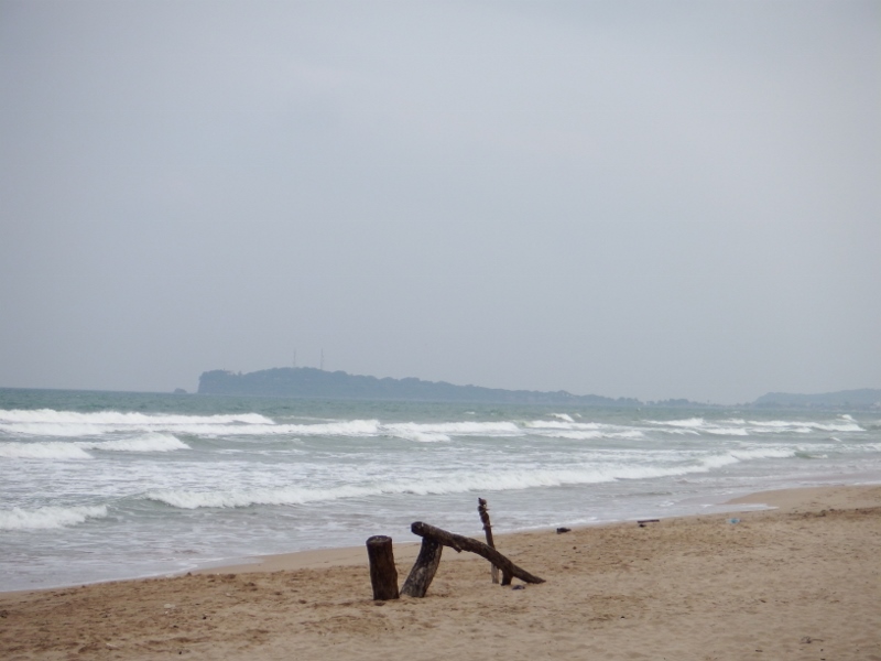 We walked back down the hill to find a tuk tuk to take us to the Uppuveli beach. The winds that had blown us here were still blowing quite strongly out at sea. This is Uppuveli beach, which faces to the east, where we had come from, looking toward the cliffs where we had been standing not more that half an hour ago. Wonderful surf but no swim today.