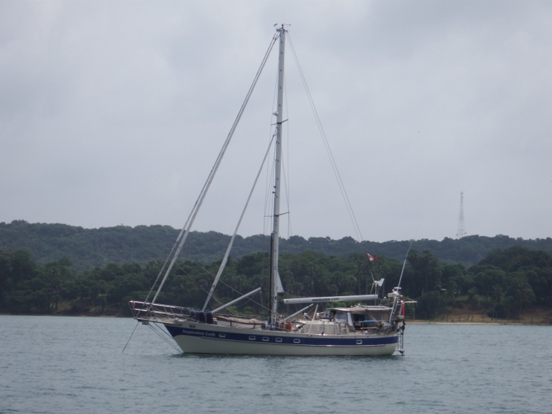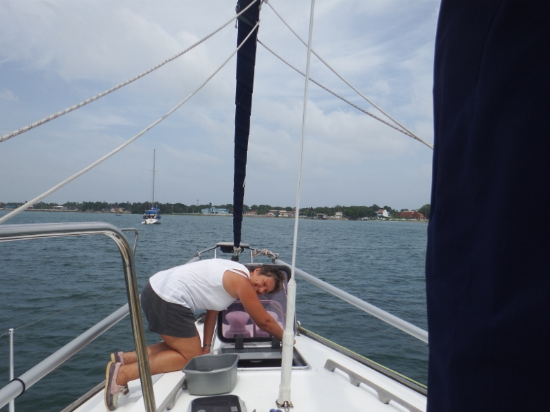 The next day was a celebration for Sri Lanka having fully gained their independence from the British in 1947. There wasn’t very much planned in Trinco except that every where was shut so we spent the day sorting out the boat. Bill discovered more problems with the twizzle rig. The central ring had been bent out of shape and the downhaul needed some work. Bill had kept the metal ring from the clew of the old sail which was good enough for the job, he then sewed a ‘thimble’ onto the end of the downhaul so that sorted that out. One of the big shackles had also broken although not from the damage, just general wear and tear but Bill managed to borrow one from Gary when they arrived on Inspiration Lady later that day.